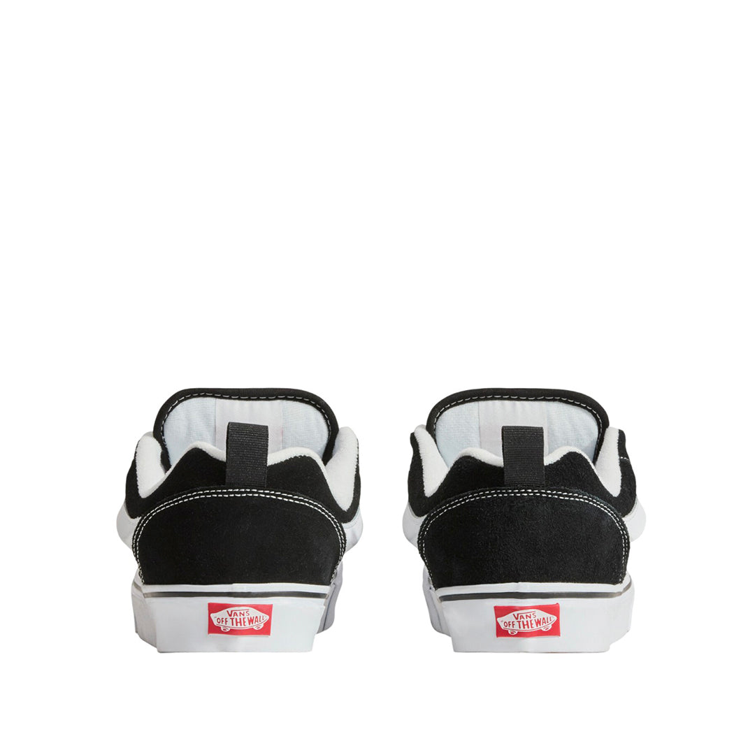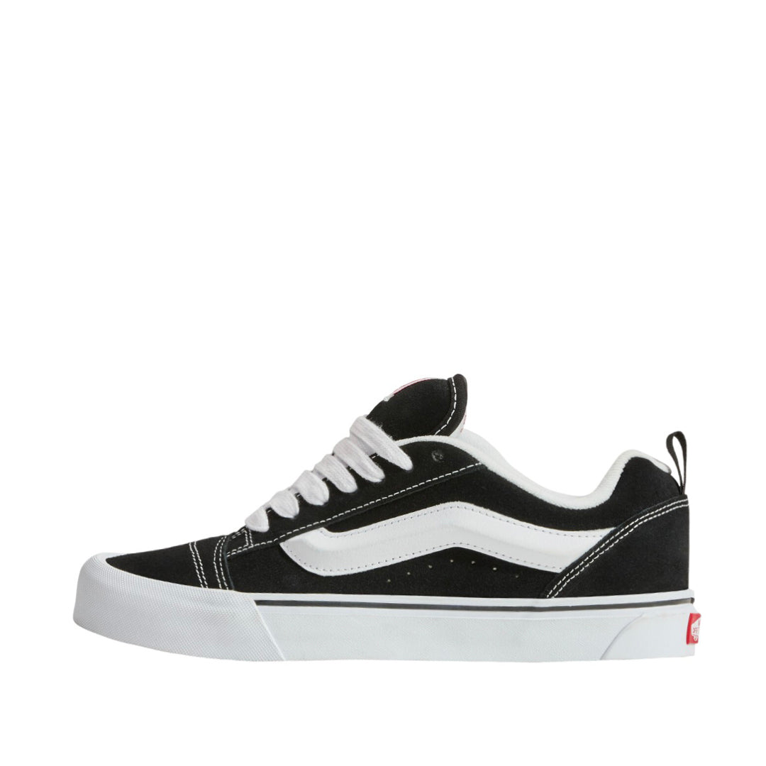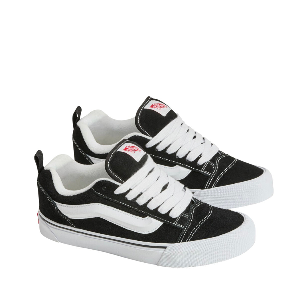 Tennis Knu Skool unisex en negro y blanco, reinterpretación moderna del estilo 90s. Con lengüeta y cuello acolchados, banda lateral Sidestripe™ 3D y cordones gruesos. Su silueta robusta combina herencia clásica con detalles contemporáneos.
